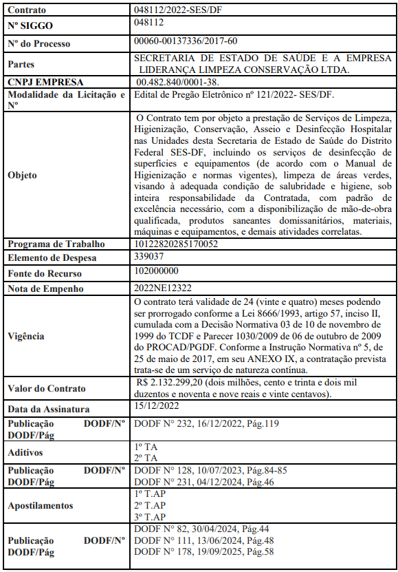 LIDERANÇA LIMPEZA CONSERVAÇÃO LTDA