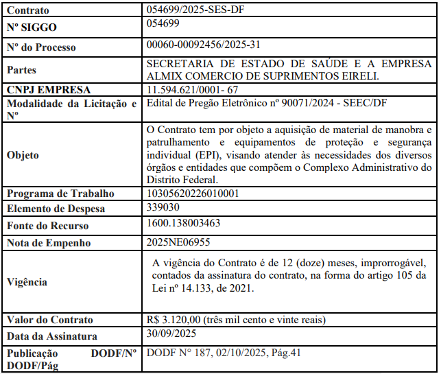 Voltar Contrato 054699-2025 - ALMIX COMERCIO DE SUPRIMENTOS EIRELI