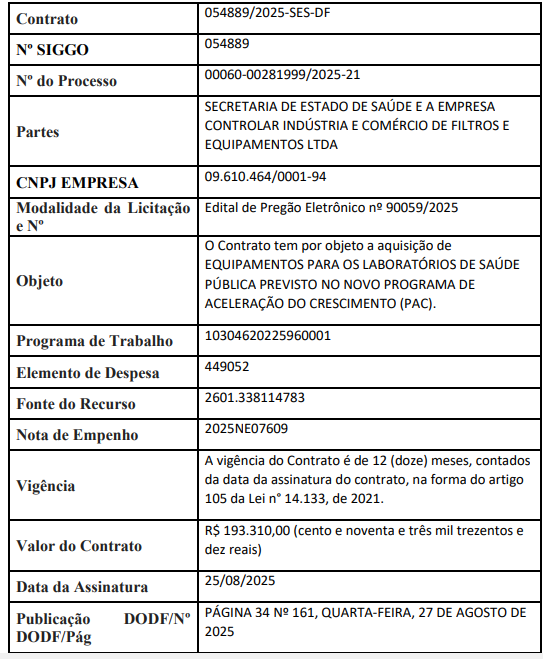 Contrato 054889-2025 - CONTROLAR INDÚSTRIA E COMÉRCIO DE FILTROS E EQUIPAMENTOS LTDA