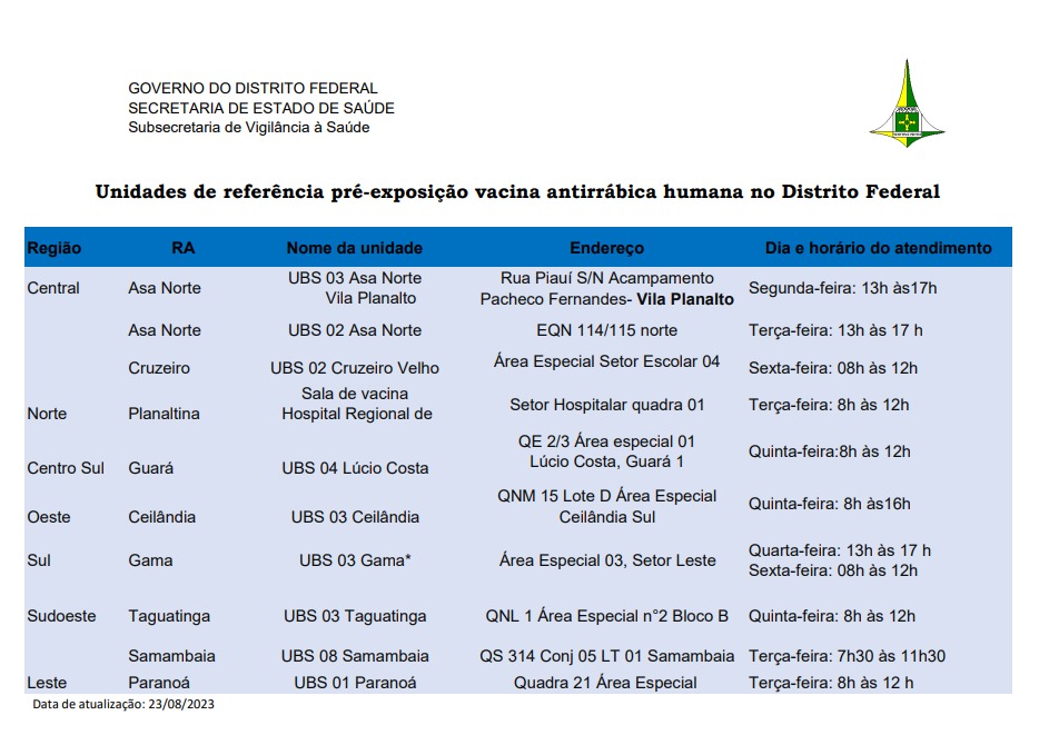 Confira aqui a lista de locais, dias e horário de atendimento em que se realiza a profilaxia pré-exposição antirrábica humana.