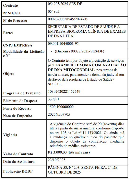 Contrato 054905-2025 - BIOCROMA CLÍNICADE EXAMES DE DNA LTDA