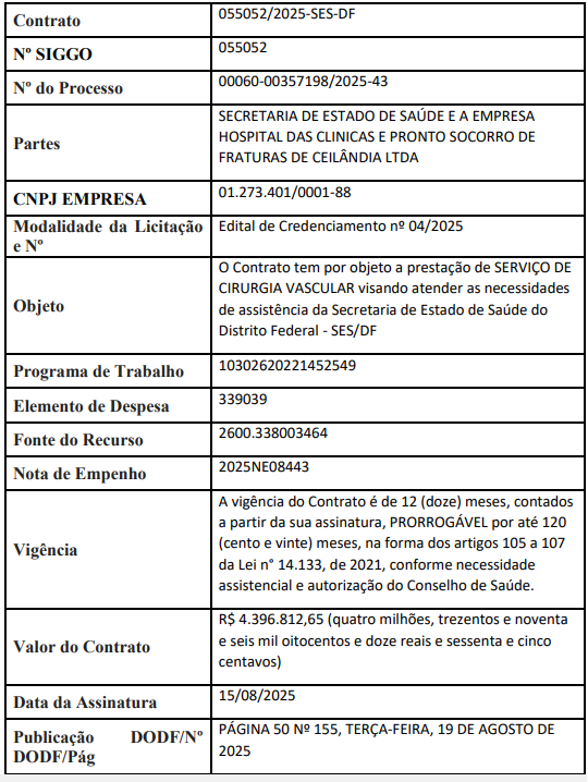 Voltar Contrato 055052-2025 - HOSPITAL DAS CLINICAS E PRONTO SOCORRO DE FRATURAS DE CEILÂNDIA LTDA