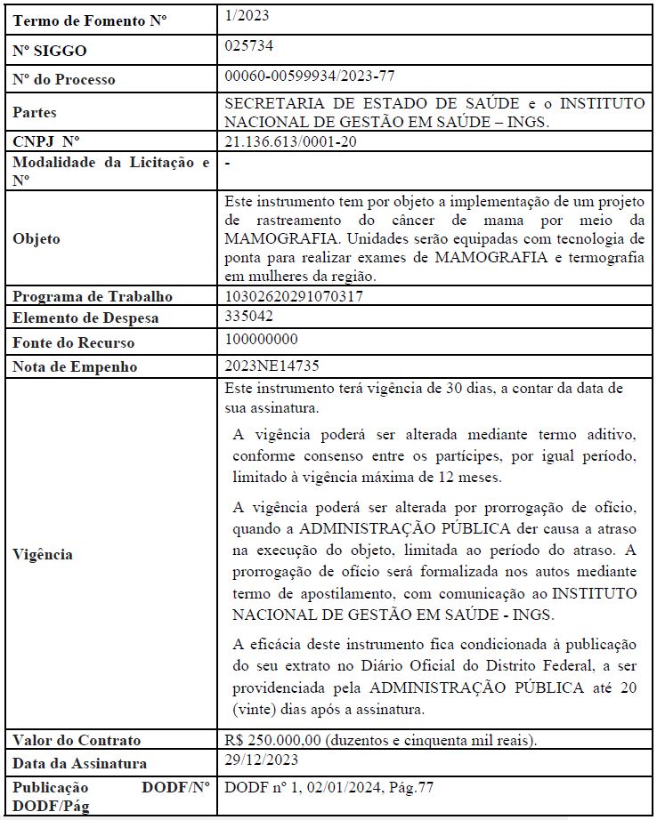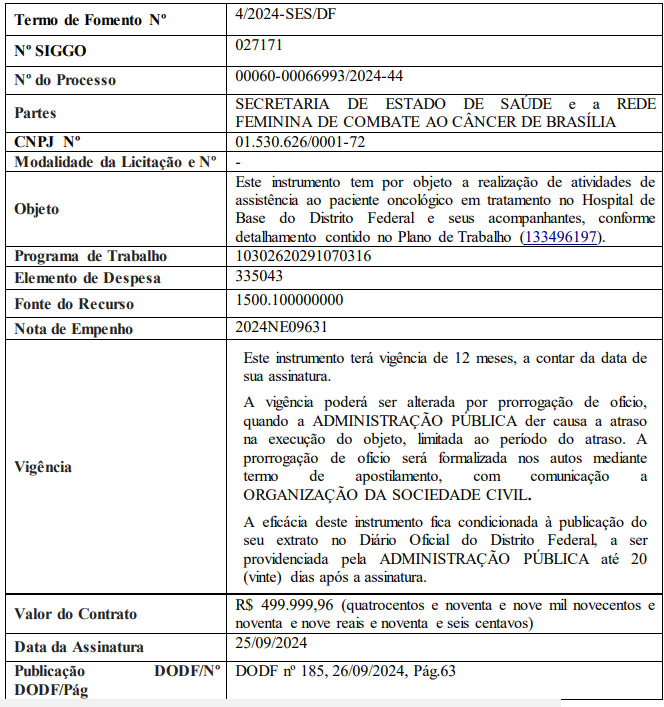 | 004/2024 | Rede Feminina de Combate ao Câncer de Brasília (RFCC-DF) |