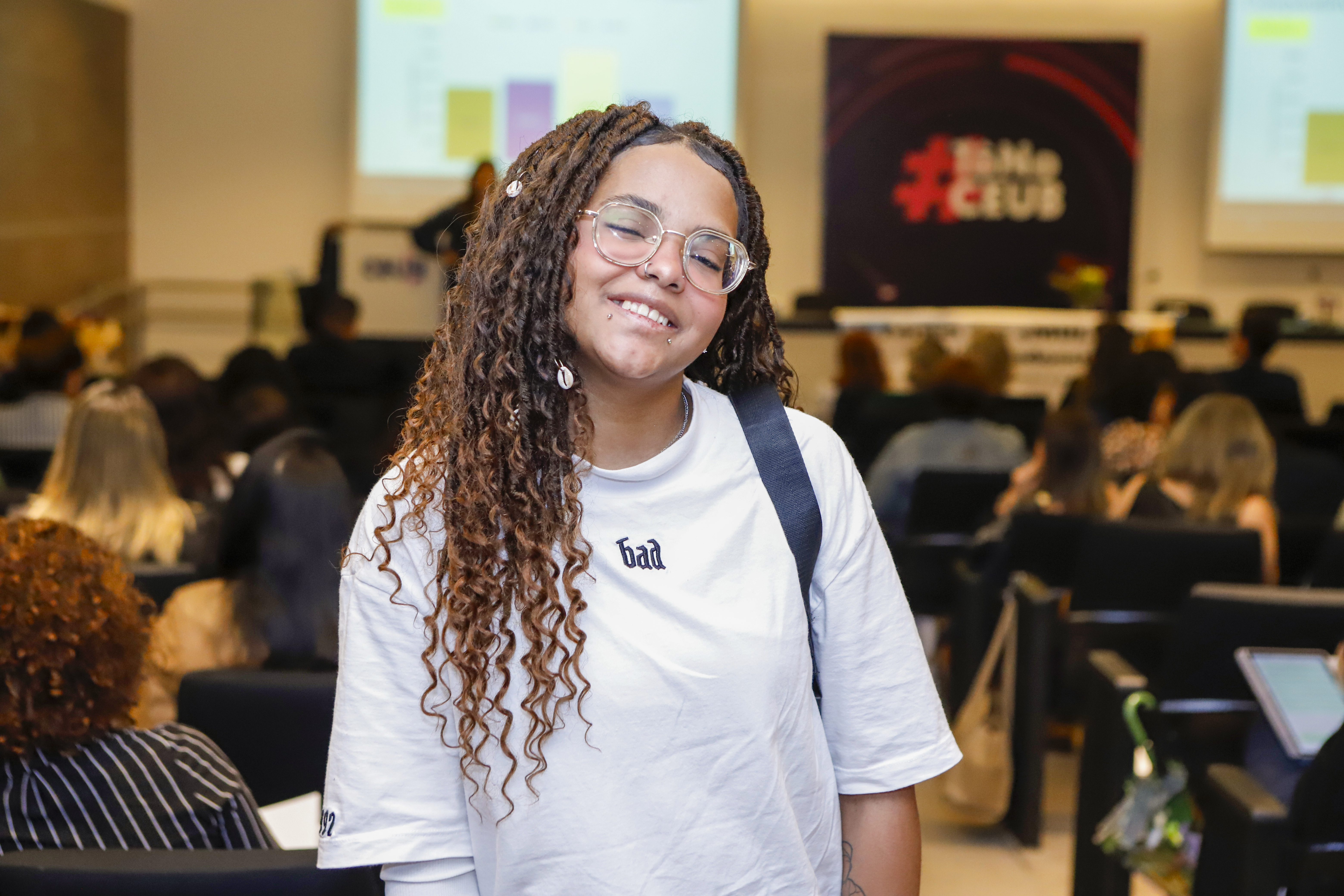 A paciente da Unidade Básica de Saúde (UBS) 5 do Recanto das Emas, Lorena Alves, foi convidada a cantar no fórum, após ser encorajada pela equipe de saúde que a acompanha. “Achei muito especial estar aqui hoje”, disse. Foto: Jhonatan Cantarelle/Agência Saúde DF