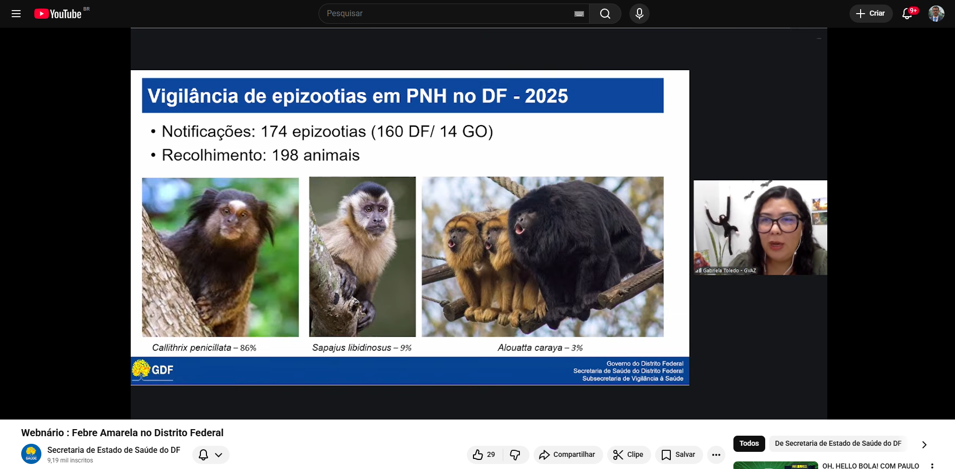 O evento destacou que, embora o Distrito Federal mantenha um monitoramento rigoroso, a natureza silvestre da doença exige atenção constante, especialmente na identificação de casos em macacos, que funcionam como sentinelas para a circulação do vírus.